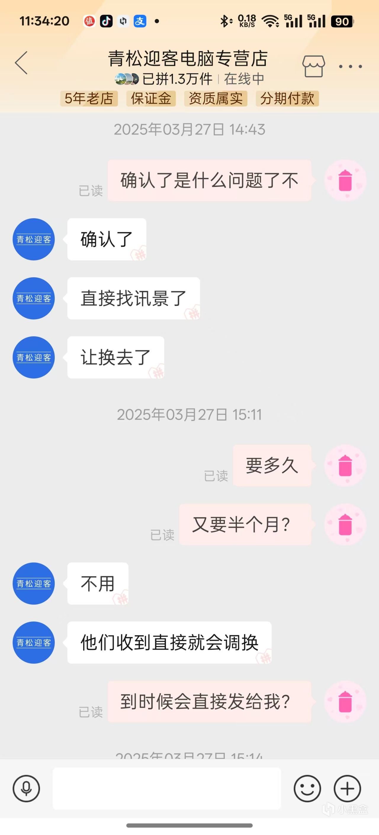本次售后并不是很愉快,与商家的聊天记录图片也较多(鼠鼠快要毕业了要去当牛马了感觉以后能玩游戏的时间少了,所以也一直在催商家处理)。