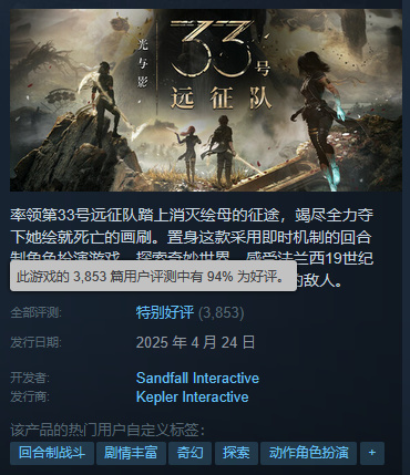 不到兩天,官方宣佈《33號遠征隊》在全平臺售出了50萬份。考慮到低價區造成的收入影響,或能通過多平臺同步發售,以及首發加入XGP的保底來彌補,若以每份50美元的價格估算,遊戲目前的總收入或已超過2500萬美元