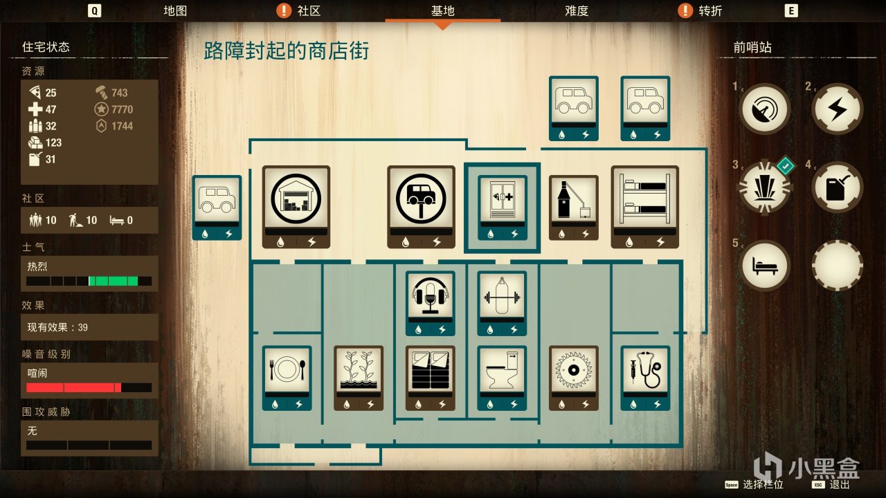 以商人领袖为例,基地必要设施有医院(解决伤病和药品)、厨房(解决零食问题)、酿酒室(货源)、贸易站(进货的地方与卖家)、修车厂(修车+改车)、工坊(子弹制作)、床位(够用就行)。这些空位能够满足需求后,其他就根据需要和兴趣来补充了。