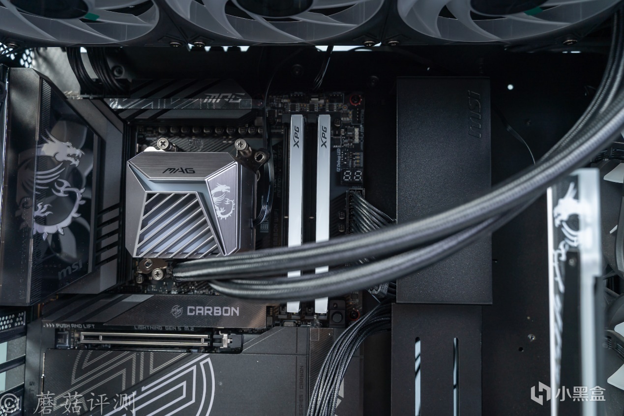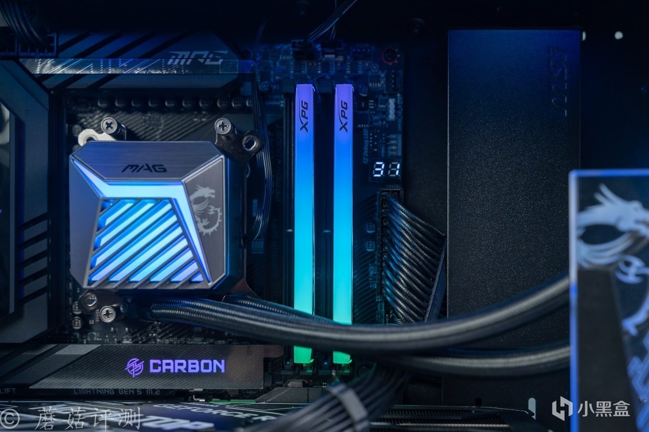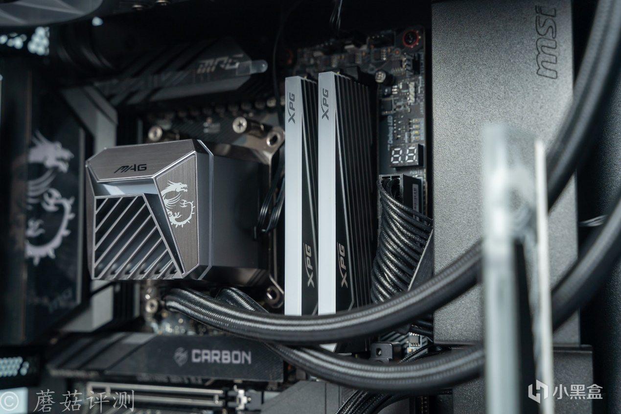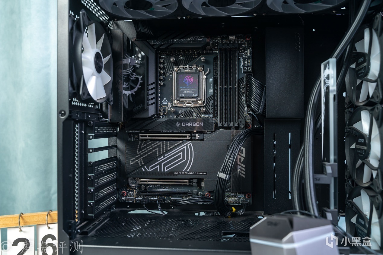 ▼主板是微星的MPG X870E CARBON WIFI暗黑,這塊主板用料很出色,處理器供電採用18+2+1相的規格,核心供電18相,清一色的90A的DrMos,可以輕鬆應付9000系AMD處理器的供電需求。