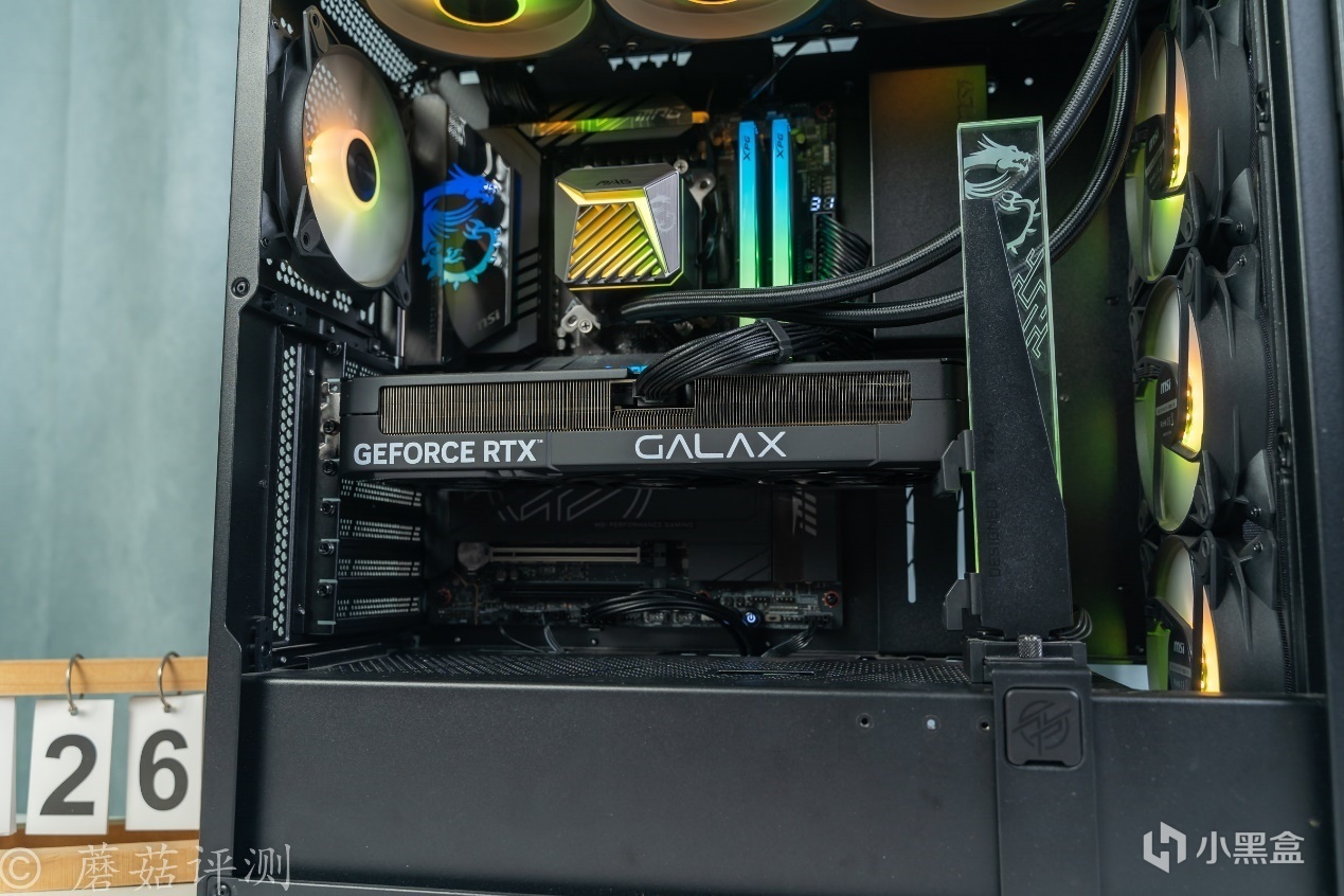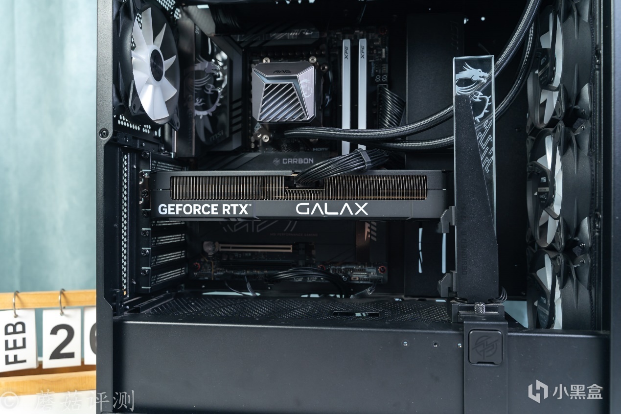 ▼顯卡默認水平安裝,並在顯卡的尾部撐一個機箱標配的顯卡支架。
