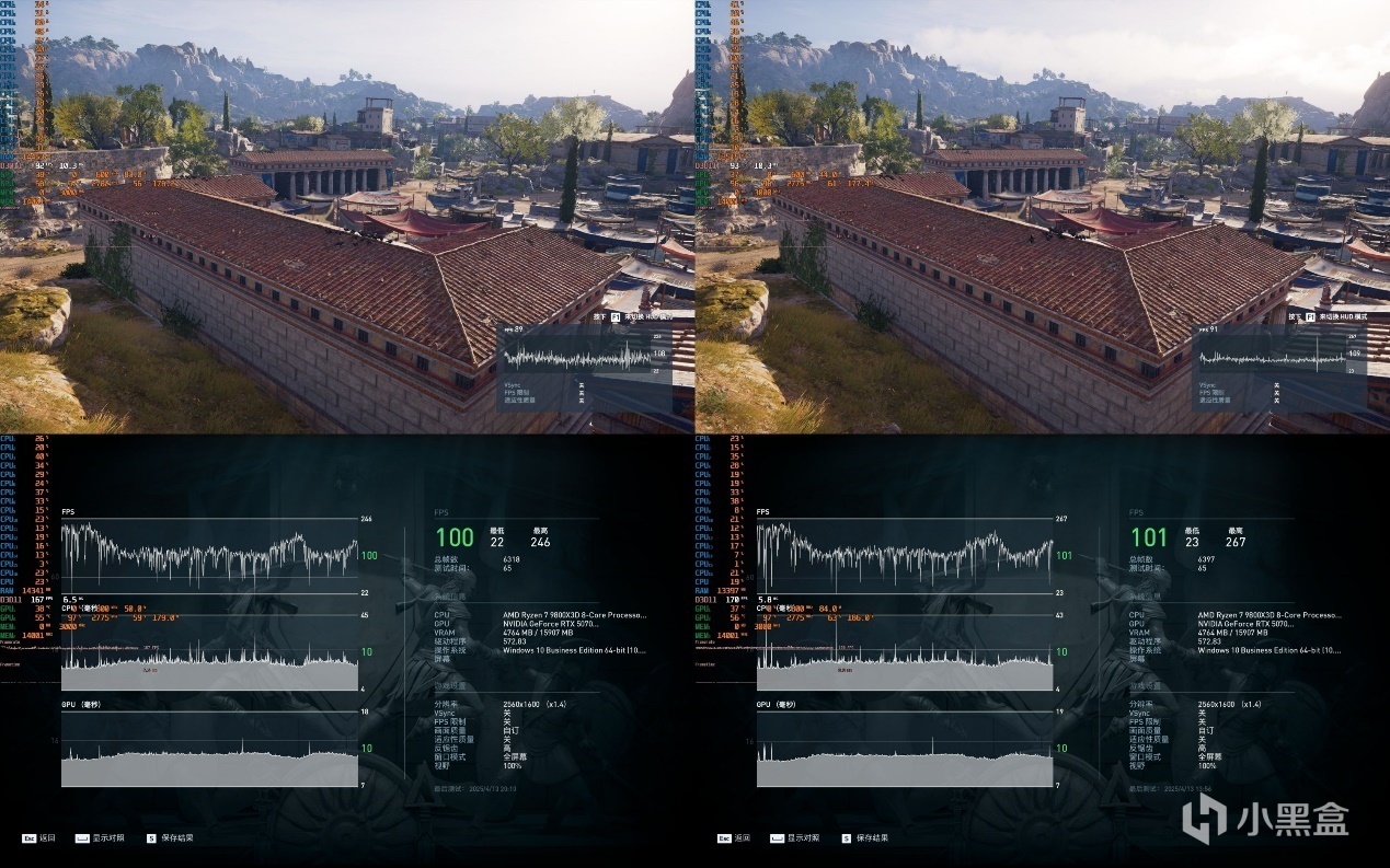 ▼首先測試的就是CS2,2K分辨率,高畫質,平均遊戲幀數從354.1幀提高到398.8幀,差點過400幀。Low幀方面,從175.5幀提高到185.8,提升也很明顯。