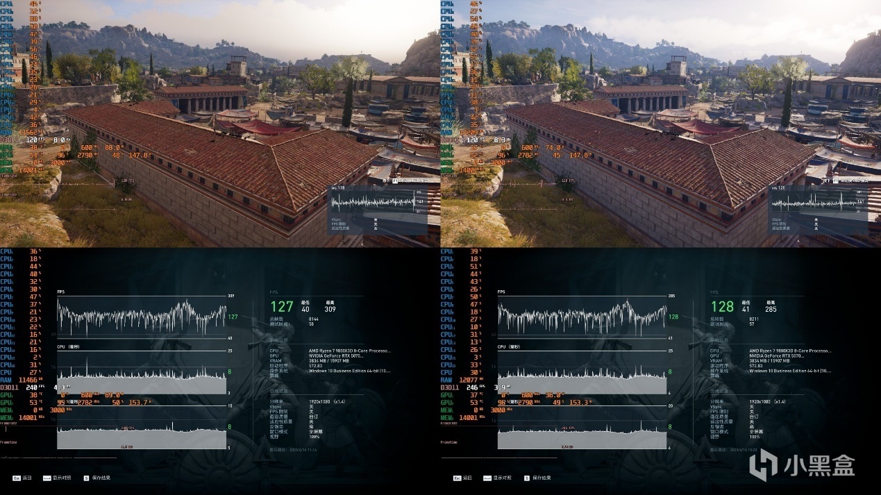 ▼衆生平等奧德賽,1080P分辨率,全極高特效,體積雲最低,整體的平均遊戲幀數從127幀提高到128幀。