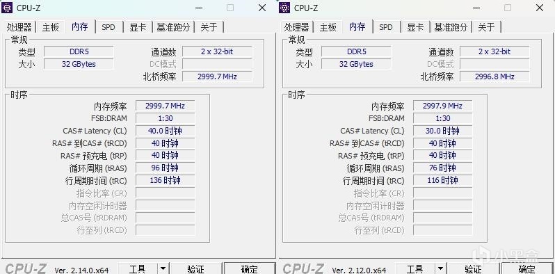 ▼蘑菇手頭正好有一套6000MHz C40的內存條,正好可以用來對比威剛XPG龍耀D350G這套6000MHz C30的內存。