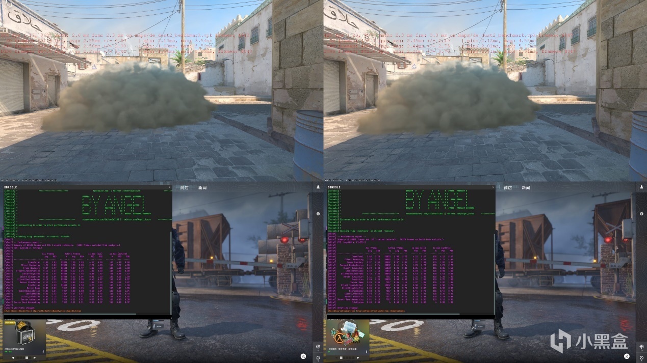 ▼上面都是2K分辨率的測試,把分辨率換成1080P再跑一遍。首先是CS2,1080P分辨率,高畫質,測試平均遊戲幀數從485.2幀提高到488.4幀,最低幀從261.4幀提高到270.3幀,提升均非常明顯。