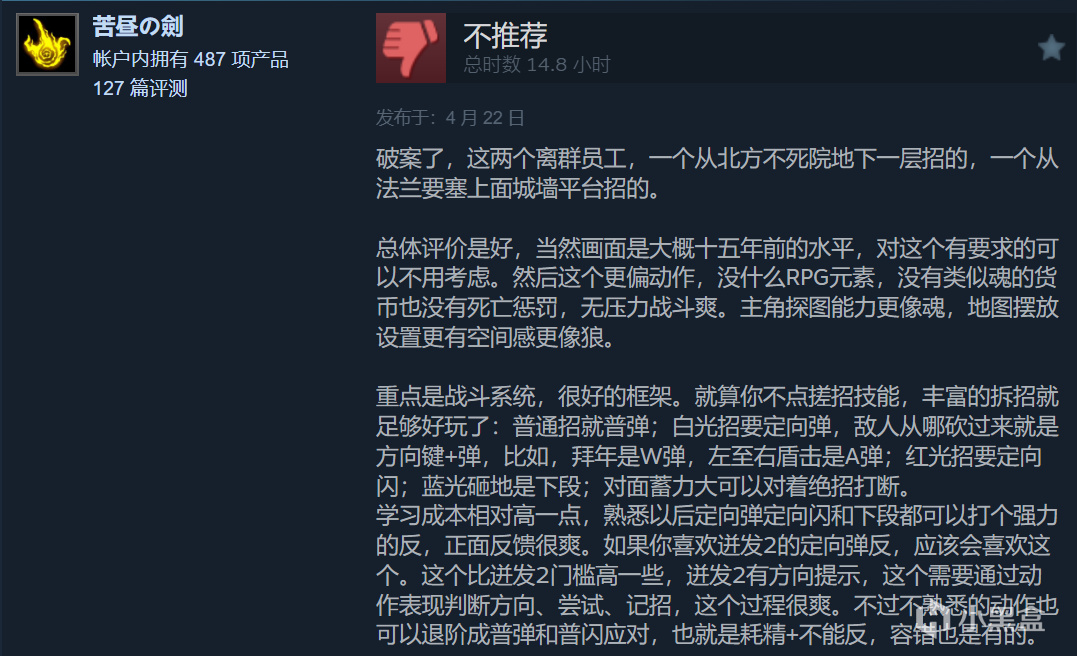 可以看到即便是评论区的差评,不少也是因为本作围绕动作系统之外的内容太过于粗糙(比如画质、UI等),那么作为核心内容的动作系统表现如何呢?