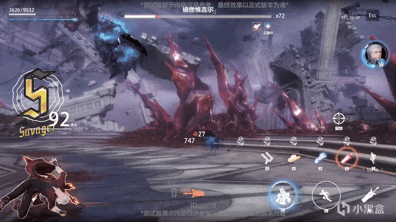 而爲了把《鬼泣5》那一大堆花哨招式塞進《戰雙》的操作框架裏,製作團隊爲鬼泣角色量身定製了類似露西亞·誓焰的迭代三消系統,即將各色信號球統一轉化爲白球,只與傷害數值掛鉤,不再對技能CD進行軟限制,想怎麼打就怎麼打。