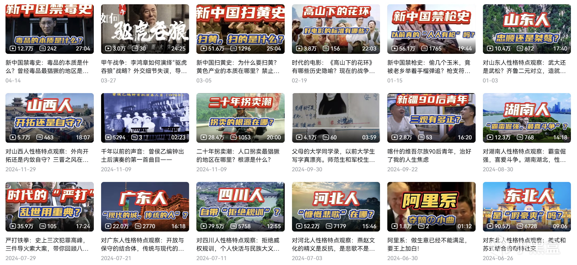 看他做地域性格特点入的坑,感觉分析的还是比较到位,没有刻意抹黑,而是相对客观地论述他的观察结果。后来发现他对新中国发展一些侧面的解析也相当到位,对文艺作品也有一定了解。相当不错的人文历史小众宝藏up。