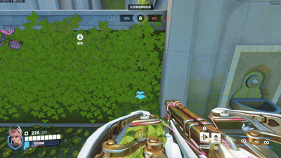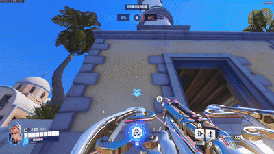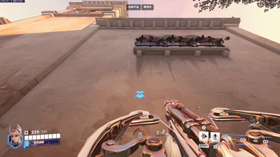 在绿洲城花园,你可以用两段Shift快速进入目标点,当然在这里你也可以使用一个E直接占领高台:
