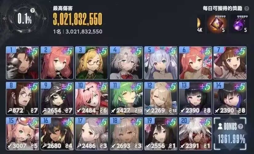 連鎖數最大值爲100,讓連鎖工具人控制在這個範圍附近儘可能的上已有的高倍率輸出角色,參考