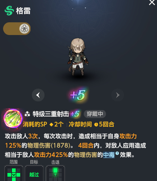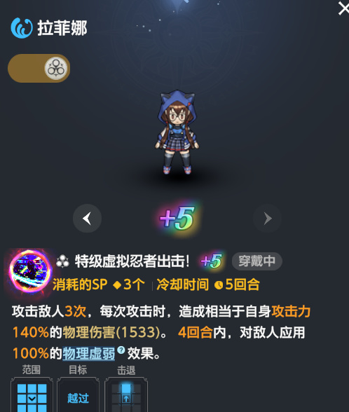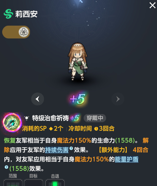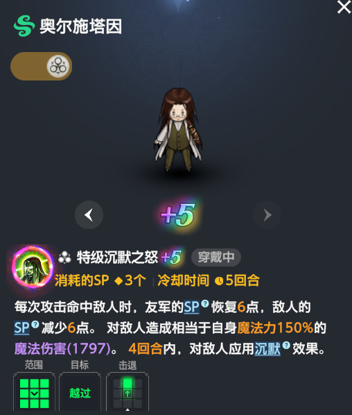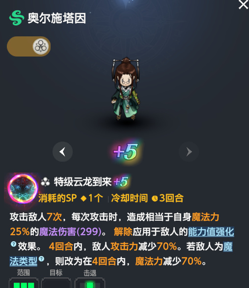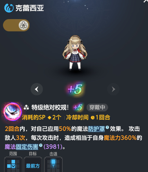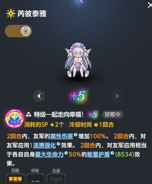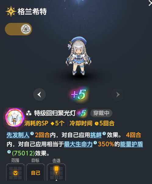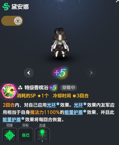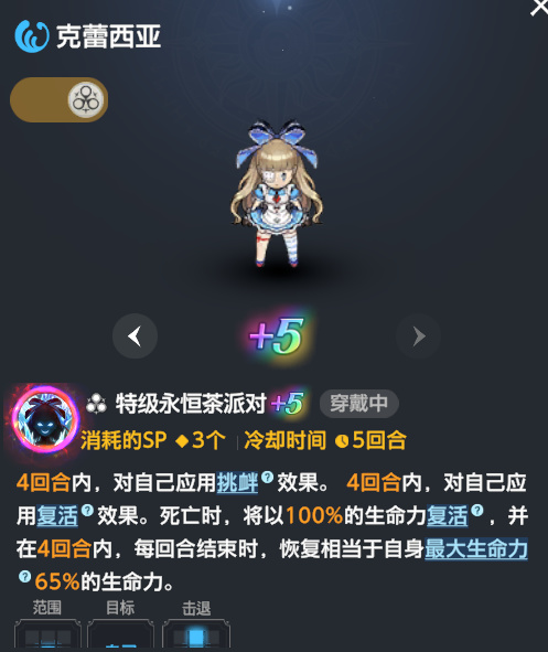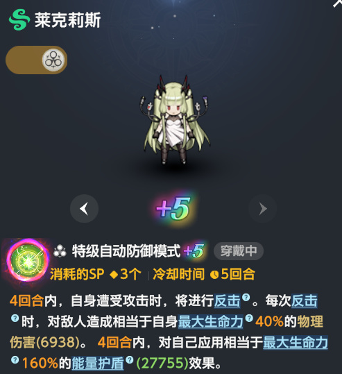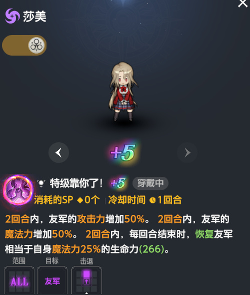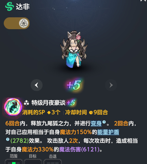 獲得追加技能效果,變身期間發動技能不消耗SP技能冷卻爲0。不受解除增益效果影響