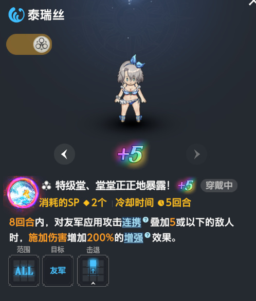 提高友方施加傷害乘區的如泳裝泰瑞斯和溫泉管理員等,滿足xx條件增加xxx%傷害。攻擊次數高且不致命的BOSS上員工塞爾加成非常可觀。
