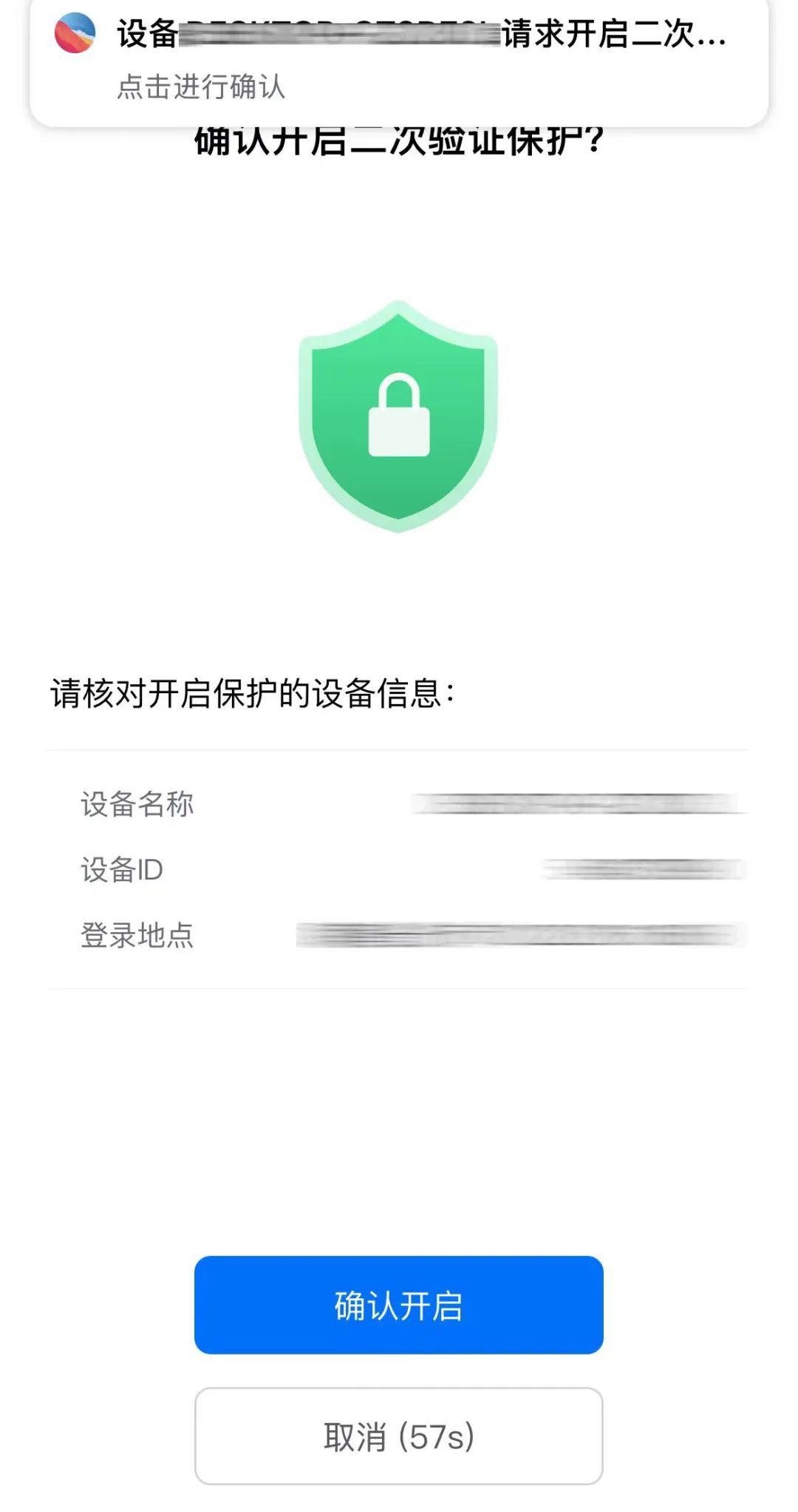 開啓之後,每次使用手機號和密碼登錄ToDesk賬戶時都需要通過主設備驗證同意才能完成登錄。在遠程控制設備時,除了輸入設備代碼和密碼外,還需要在移動端主設備中限時確認開啓二次驗證保護,否則連接將失敗。