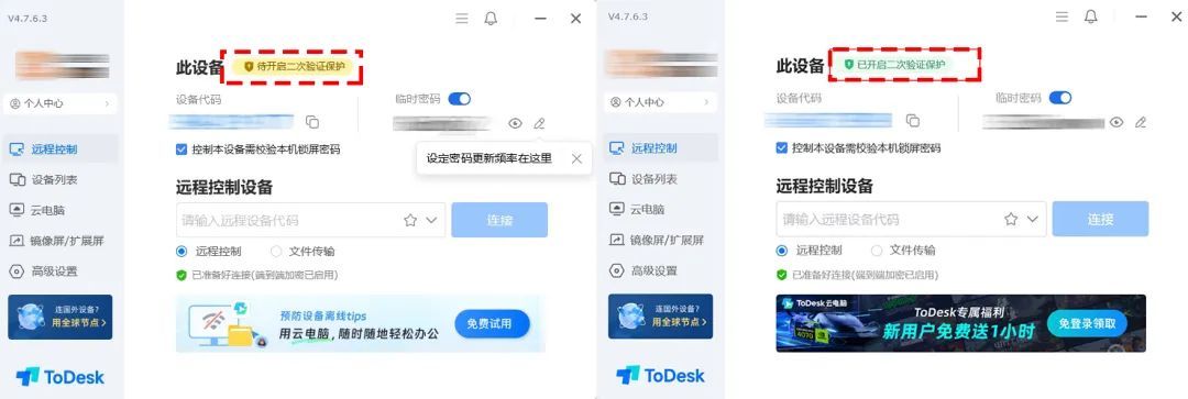 二次驗證這一項創新又實用的安全防護功能,可以稱爲是ToDesk最安全遠控的核心依據。
