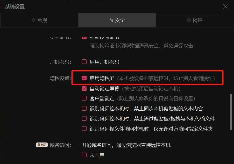 向日葵電腦端設置中提供了啓用隱私屏的選項,可以直接勾選,但在實際控制中發現連接成功後電腦端的隱私屏並未啓動,直接可以看到操作界面。