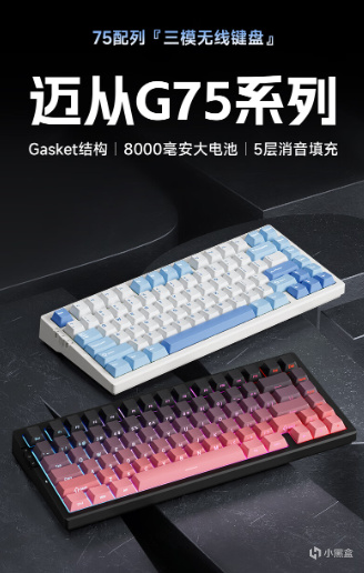 狼蛛F75,這把鍵盤24年初賣到斷貨,後期甚至要等一個月才能到貨。這把鍵盤的優點就是填充足,外觀好,外觀相比邁從的黑白配色來說會讓人接受度高一些。作爲一把23年底發售的鍵盤,目前各大平臺銷量都是10w+,實力還是毋庸置疑的。