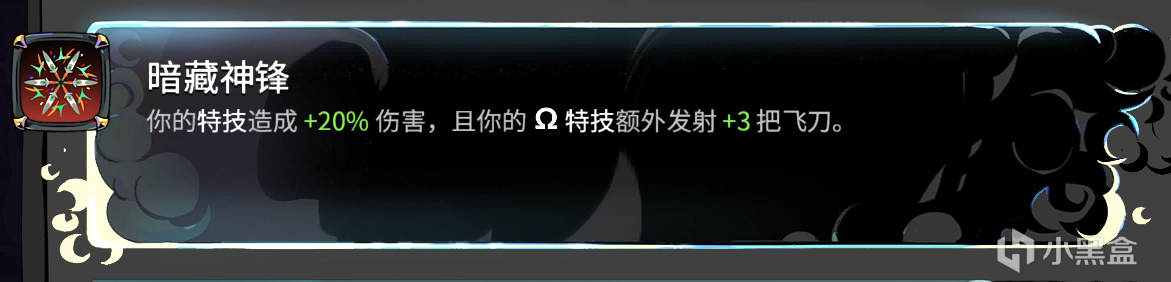 攻擊次數翻倍的效果幾乎相當於全局傷害翻倍,在合適的搭配下,往往就是高熱、速通的追求方向。同理的,雙刀3的*八面神鋒*(bushi),暗藏神鋒,加的飛刀就相當於全局傷害+60%