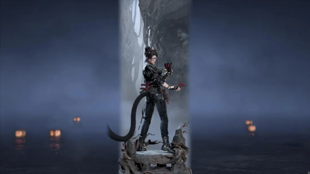 各處飾有鋒利的爪型裝飾,破洞牛仔褲也透露出不羈的氣息,但腿上卻掛着三隻小貓,這就是反差萌嗎?