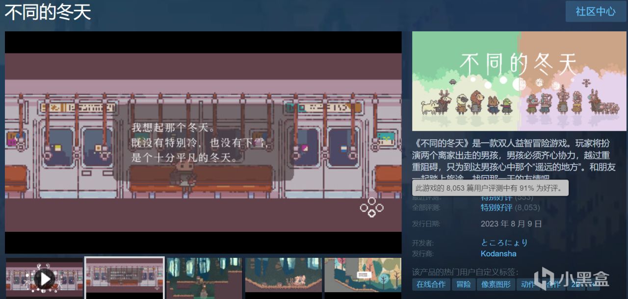 前作《不同的冬天》在steam8000+评价中获得了91%的好评率!