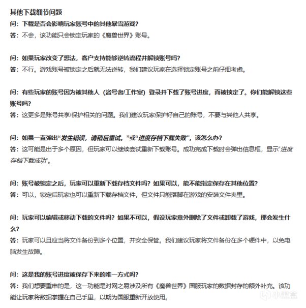《魔獸世界》在不久前已經正式上線了遊戲進度存檔下載的工具,而暴雪中國今日對該工具所涉及到的一些問題進行了解答。