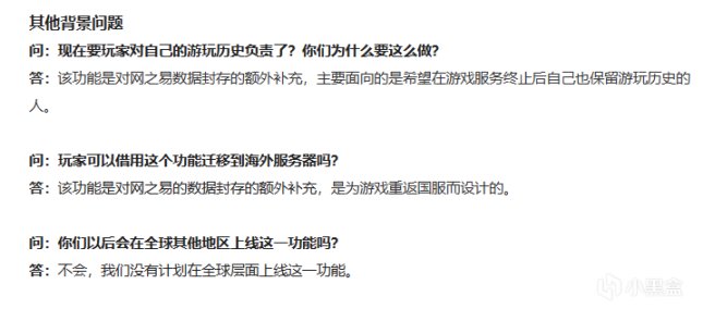 答:該功能是對網之易的數據封存的額外補充,是爲遊戲重返國服而設計的。