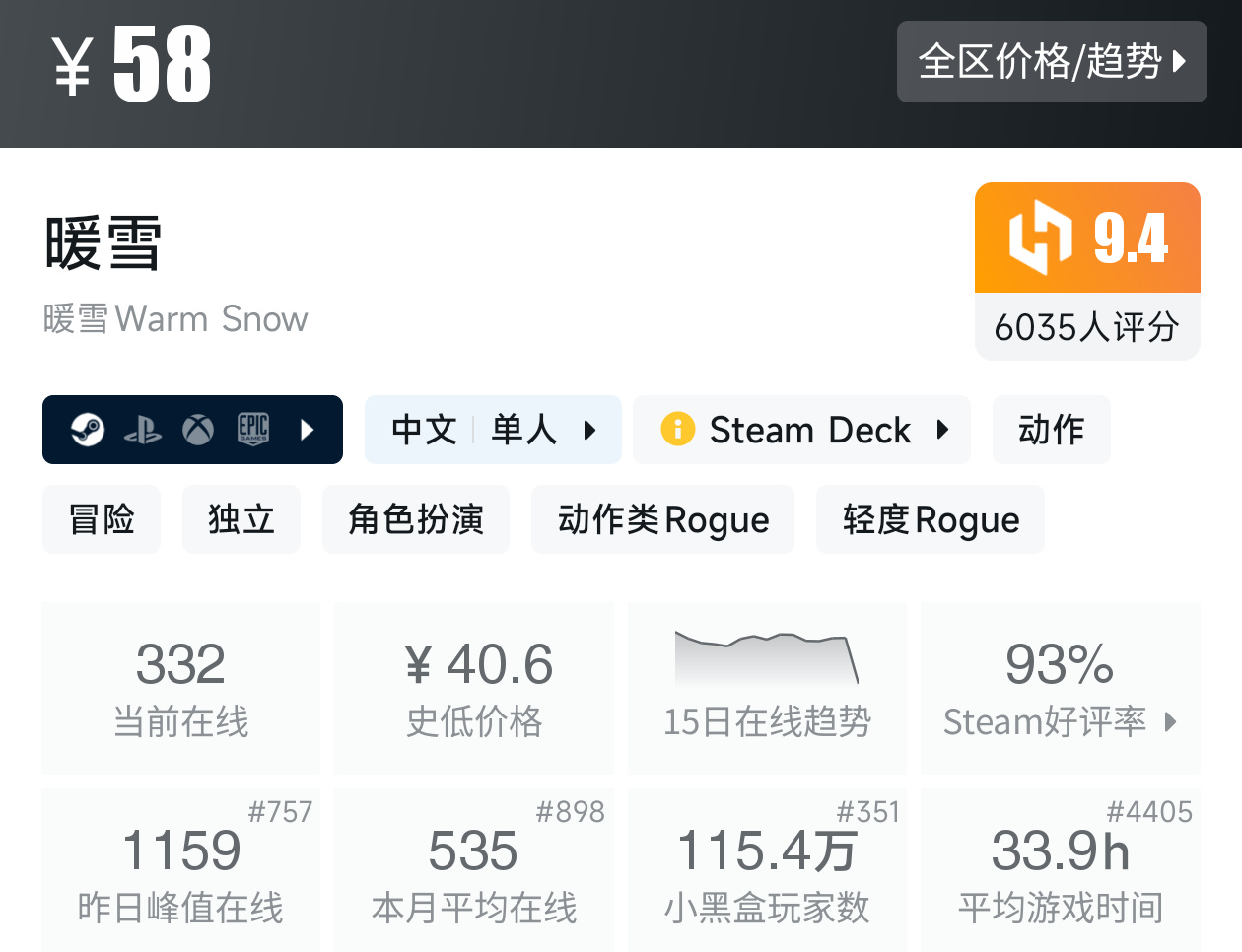 前期非常爽,后期过于重复,喜欢肉鸽战斗的小伙伴可以入手尝试一下。
