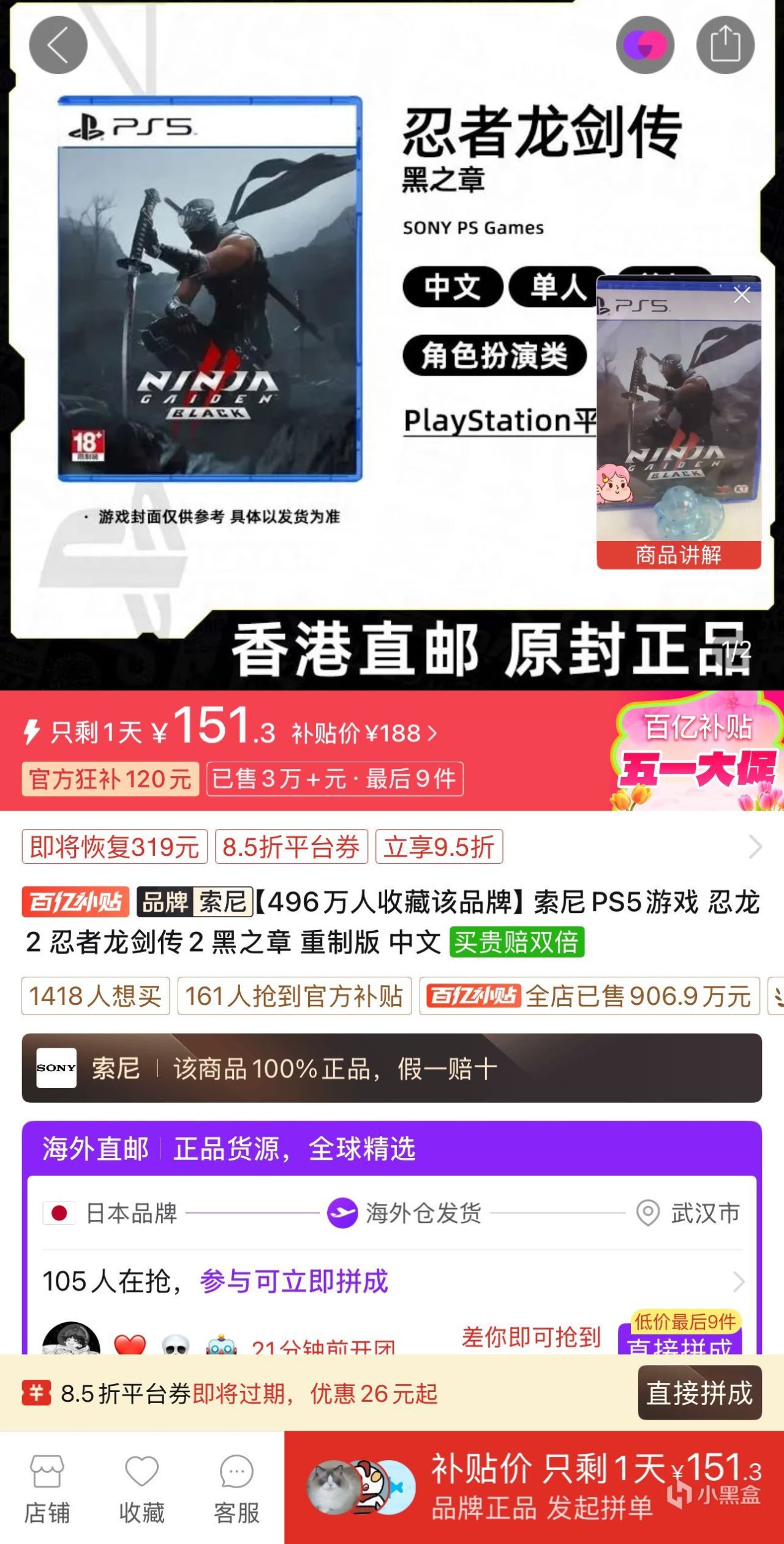 4.PS5游戏《忍者龙剑传2黑之章》港版中文151.3元全新包邮,此价格还带一套忍龙系列明信片4张,应该是商家自制的外置特典,有刷到这个价格的玩家朋友不要错过了,目前该作单游戏史低价格是140元,想要入手的朋友可以按照自己认为的合理价购入。