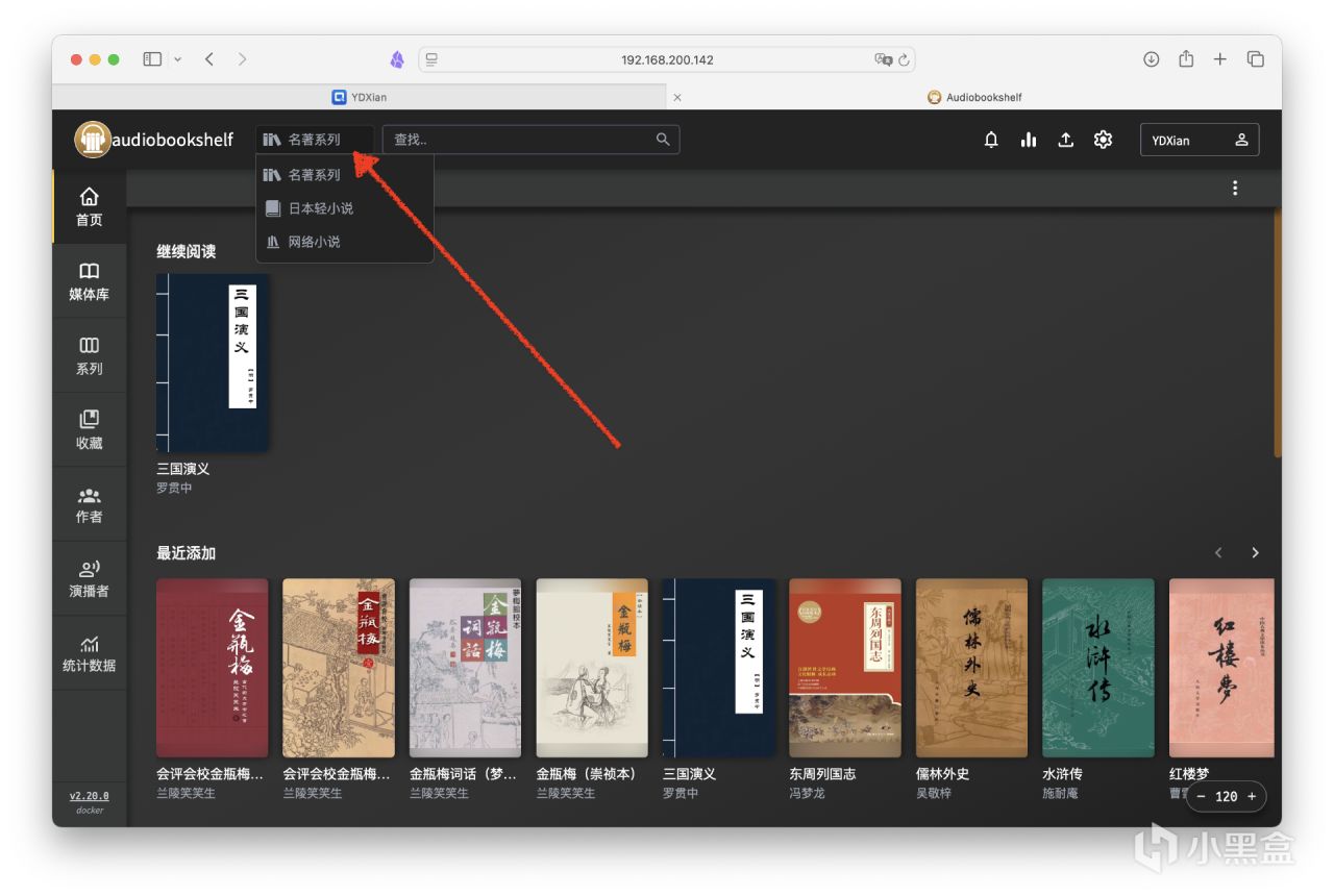 能夠記錄閱讀進度,當然不同端也都可以。點擊切換個媒體庫看看。