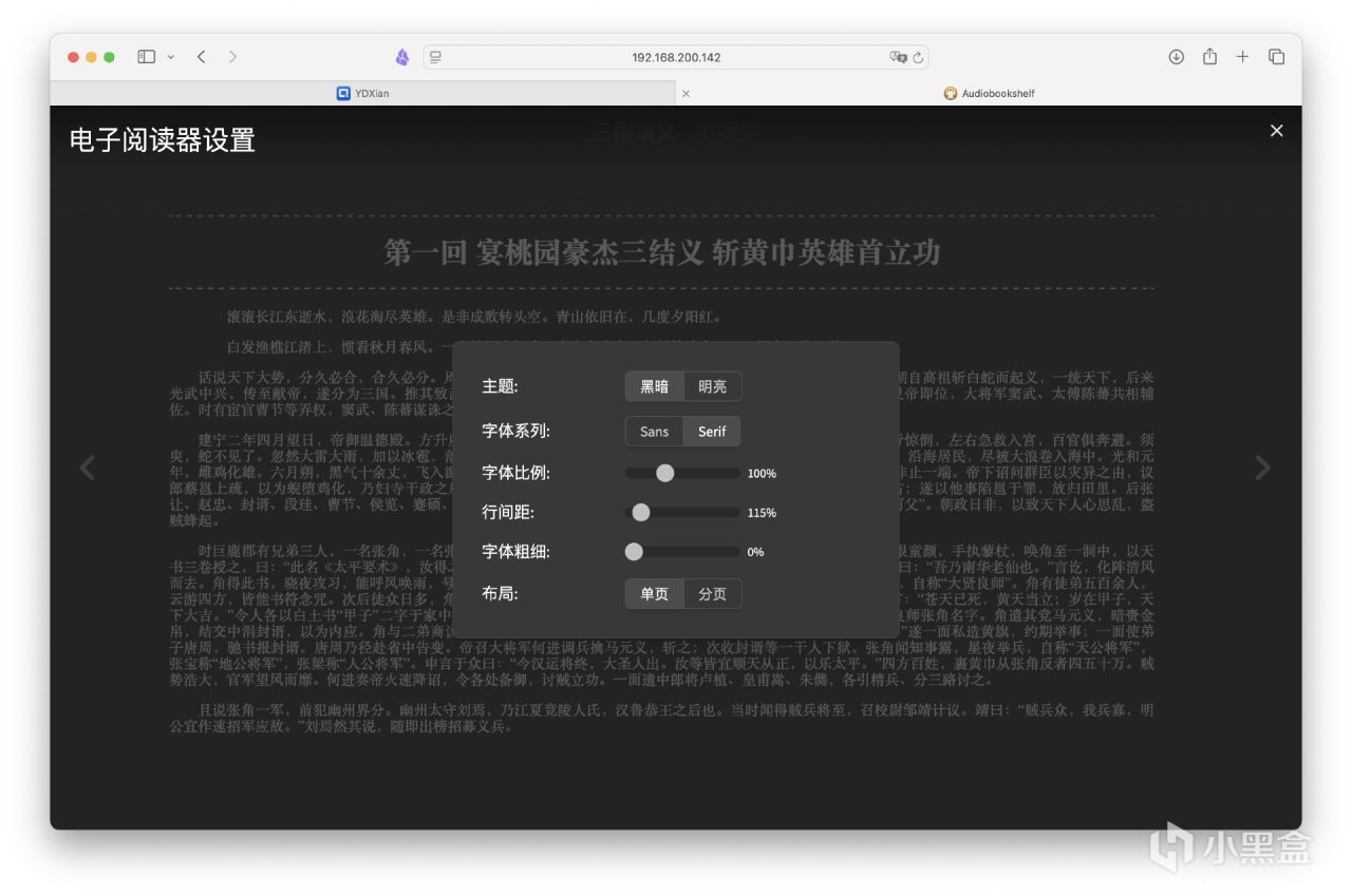 普通閱讀時,支持各種基礎設置,能夠自適應瀏覽器縮放。