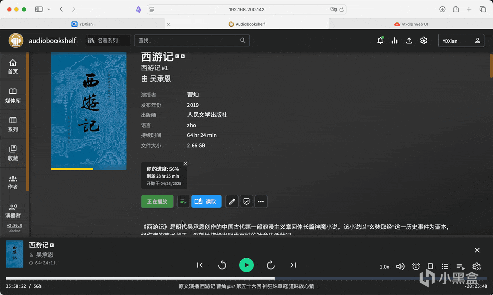 通過 Docker 部署,它的上手門檻也極低:幾分鐘配置,即可在 NAS、服務器甚至家用主機上打造出屬於自己的有聲內容中心。而且隨着項目持續迭代,未來功能只會更加完善豐富。