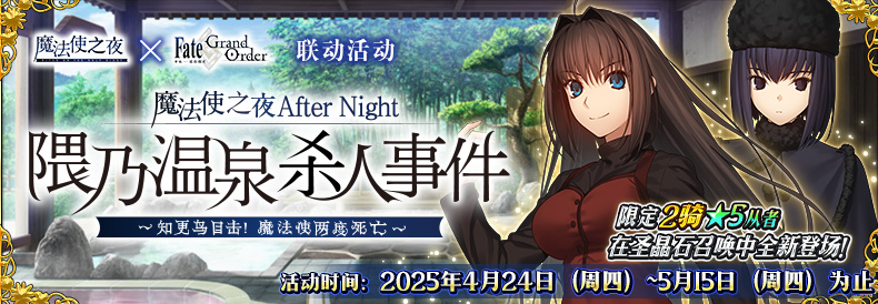 FGO的自家聯動,聯動魔法使之夜的新活動,本次活動從4月24日持續到5月15日,開啓雙卡池,限定召喚從者蒼騎青子,太空伊什塔爾。多的咱就不說了,我只想說型月這產能低的離譜,什麼時候才能看到劇場版和新作啊?