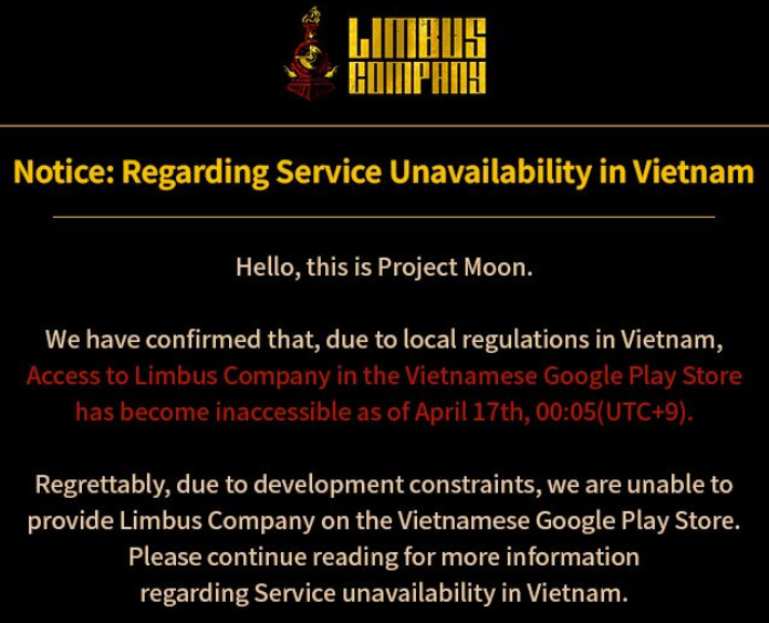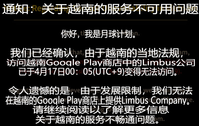 韓國遊戲開發商月亮計劃旗下的熱門手遊《邊獄巴士》(Limbus Company)發佈公告,宣佈遊戲將在越南地區下架。據越南當地玩家透露,此次下架的原因與越南政府對遊戲交易的監管政策有關。越南方面要求,對於沒有越南代理的遊戲,其交易必須受到監管並繳納相應稅款。而月亮計劃人不在越南也沒有設立代理,這使得他們無法滿足越南政府的這一要求,最終只能無奈選擇下架遊戲。