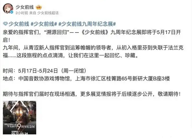 散爆網絡旗下二次元美少女軍武手遊《少女前線》將於 5 月 17 日至 5 月 24 日在上海徐彙區的中國音數協遊戲博物館,舉辦主題爲 “溯源迴歸” 的 9 週年紀念展。官方動態充滿了對往昔的回憶——你哭什麼,這不5月20號就活了嗎?《少女前線》預計於 5 月 20 日以繼承版的形式正式登陸 Steam 平臺,商店頁面現已上線並開放願望單預約。更多展會信息還需等待官方公開。