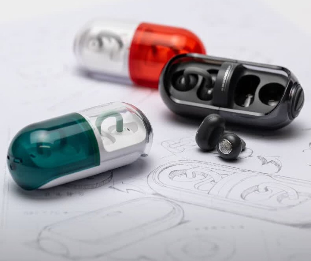 結果人家反手掏出一顆真正的"藥丸"。。。。。。耳機!這個耳機造型更是像極了藥丸膠囊,這波腦洞我給滿分! 那它到底怎麼樣!我們接下來往後看!