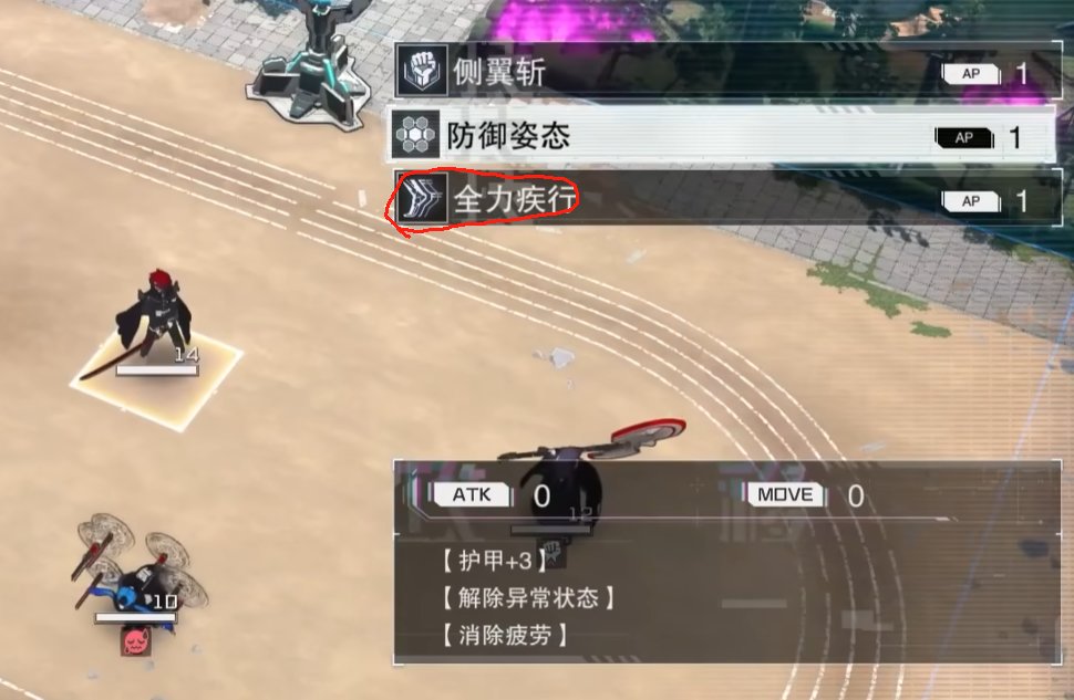 非常需要提一下的是,遊戲爲了避免遊戲的流程過於拖沓,每一名角色都是可以快速行駛到特定格子內的。在正式版中這一點顯得極其重要,很大程度上的優化了清怪的速度,要不然就是打不過,要不然就是秒對面。