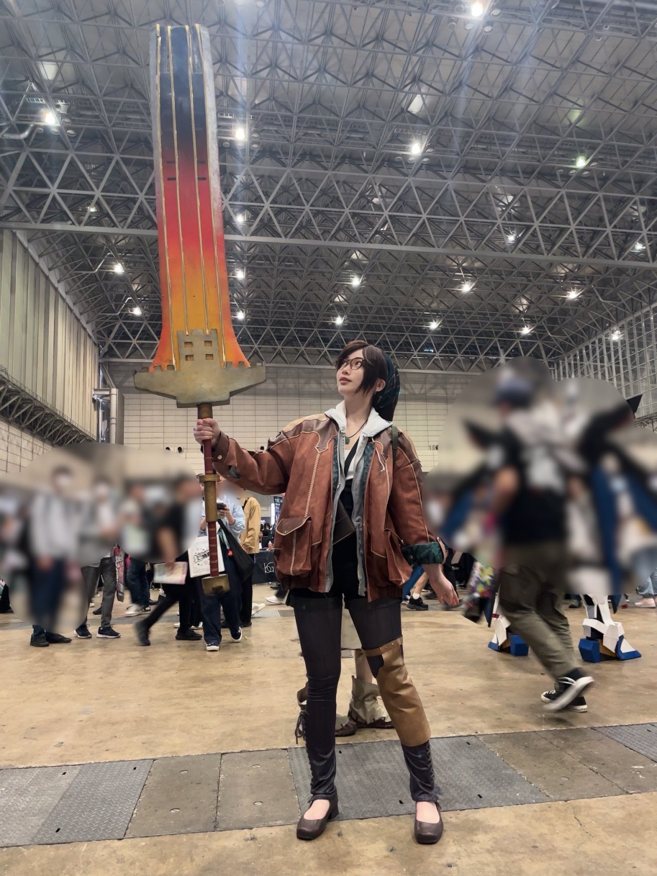 ぐり粉【WGR】(@guri_cos_8888),她COS《怪物獵人:荒野》中的阿爾瑪,在活動現場她也體驗了一下一些武器模型。