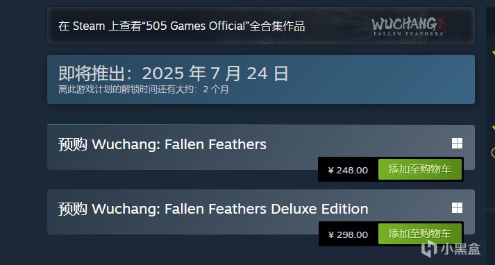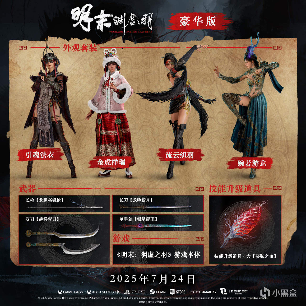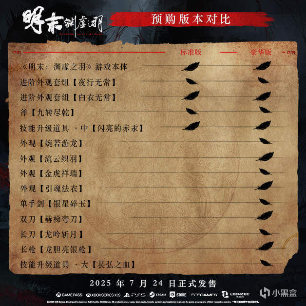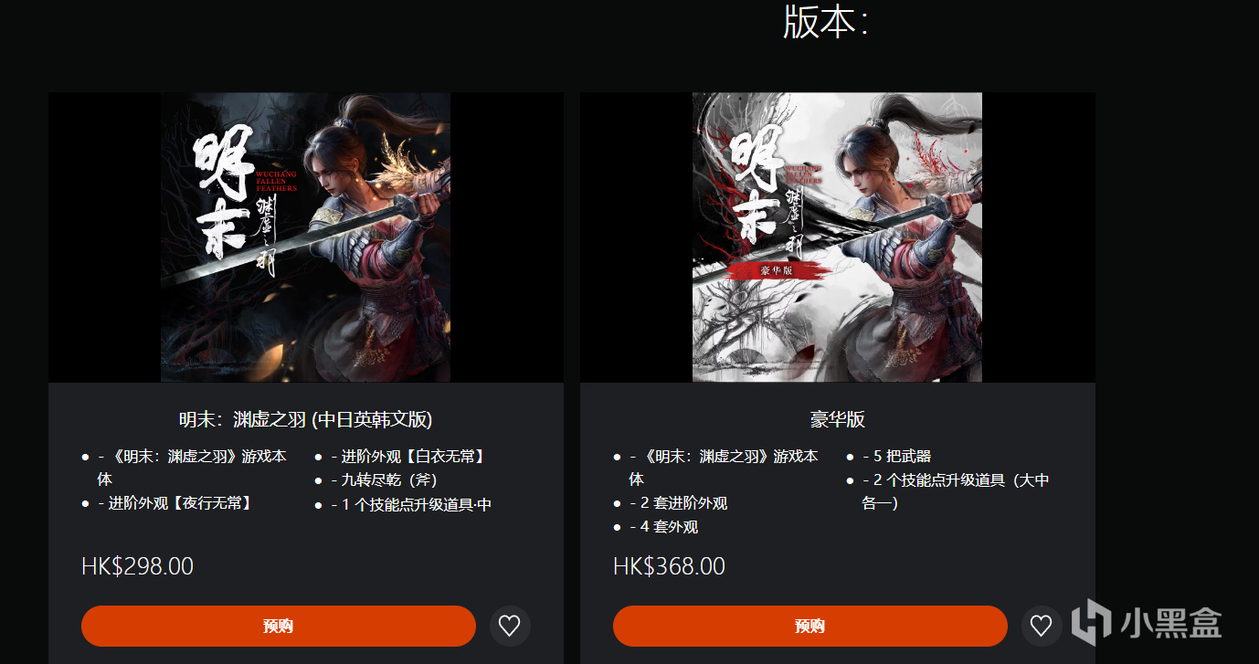Steam標準版售價248元,豪華版售價298元。PS5數字標準版售價298港幣(和黑神話一致),豪華版售價368港幣。相比港服PSN商店正常3A遊戲售價都得568港幣,《明末 淵虛之羽》這個定價可以說相當良心了。不得不感嘆,《黑神話 悟空》的定價確實給國產3A遊戲起到了一個好的帶頭作用。