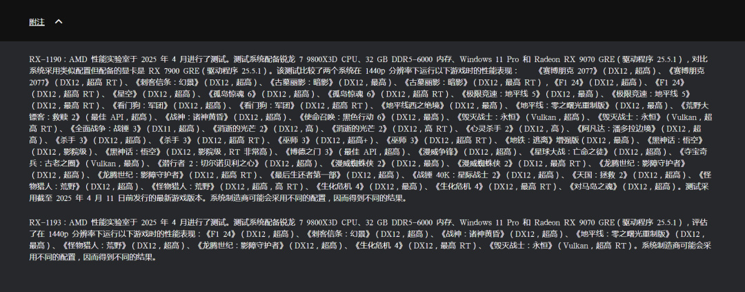 官方提供的性能參考暫且不表,RX 9070GRE的最大惡意在於顯存的縮減,RTX 5060Ti的前車之鑑歷歷在目,8GB和16GB的性能差距和圖像效果中後者堪稱碾壓。而AMD這邊本就在顯存壓縮技術方面不如NV,這樣一來以4000+的首發價格,購買一款12GB顯存的A卡是一件非常開倒車的事。