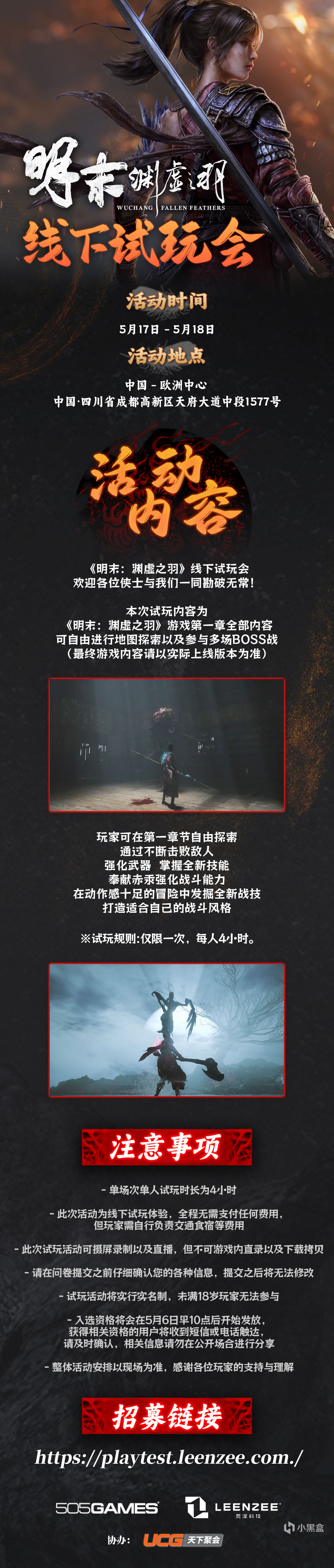 與此同時,《明末:淵虛之羽》還在線下推出三場玩家試玩活動,分別爲: