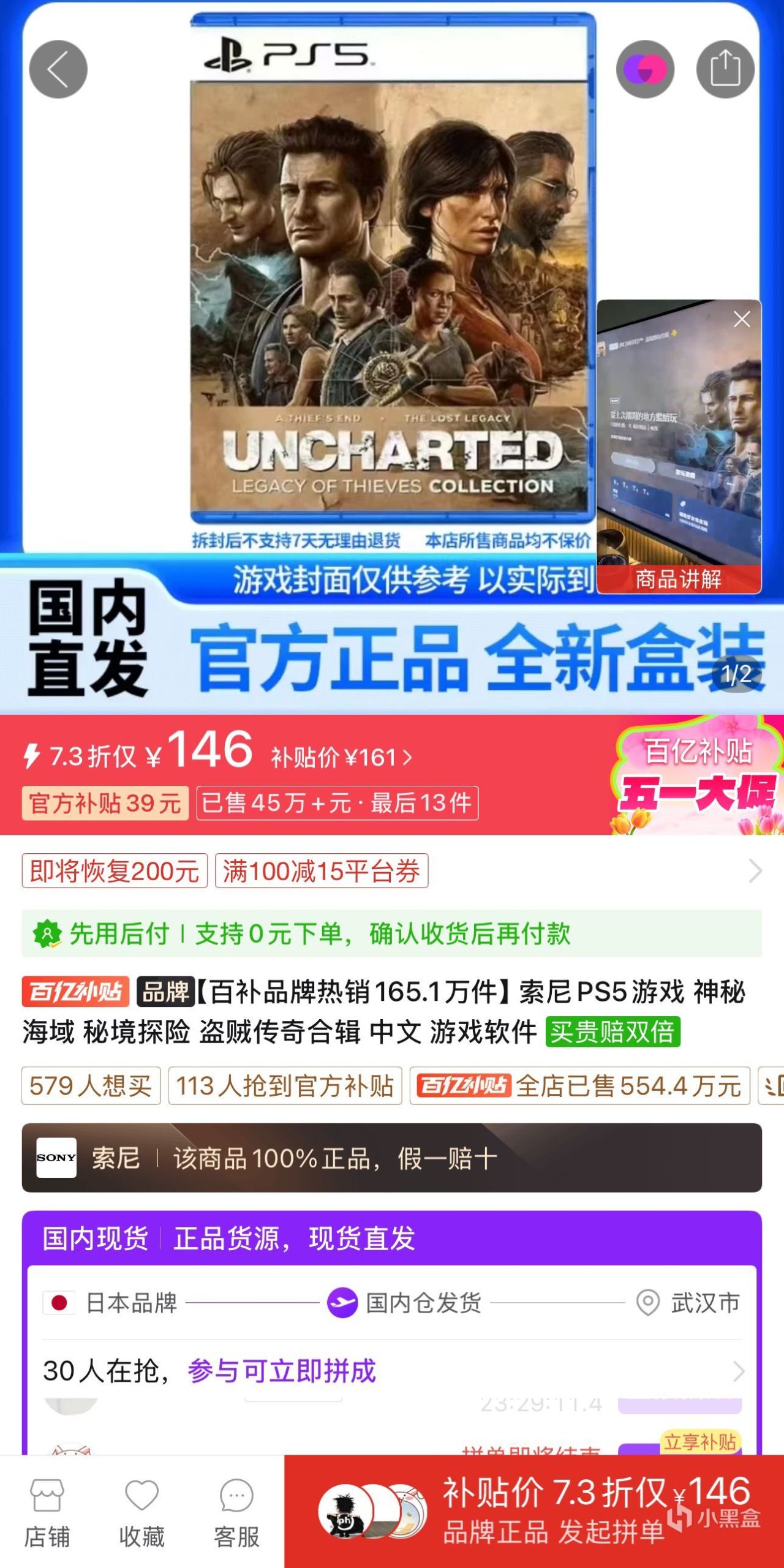 4.PS5遊戲《神祕海域4盜賊傳奇合集》港版中文146元全新包郵,最近該作暫時沒有波動,價格也趨於平穩,剛入手PS5的新玩家可以入,曾經的PS4獨佔遊戲,喜歡PS5實體版收藏的朋友也可以該價購入。
