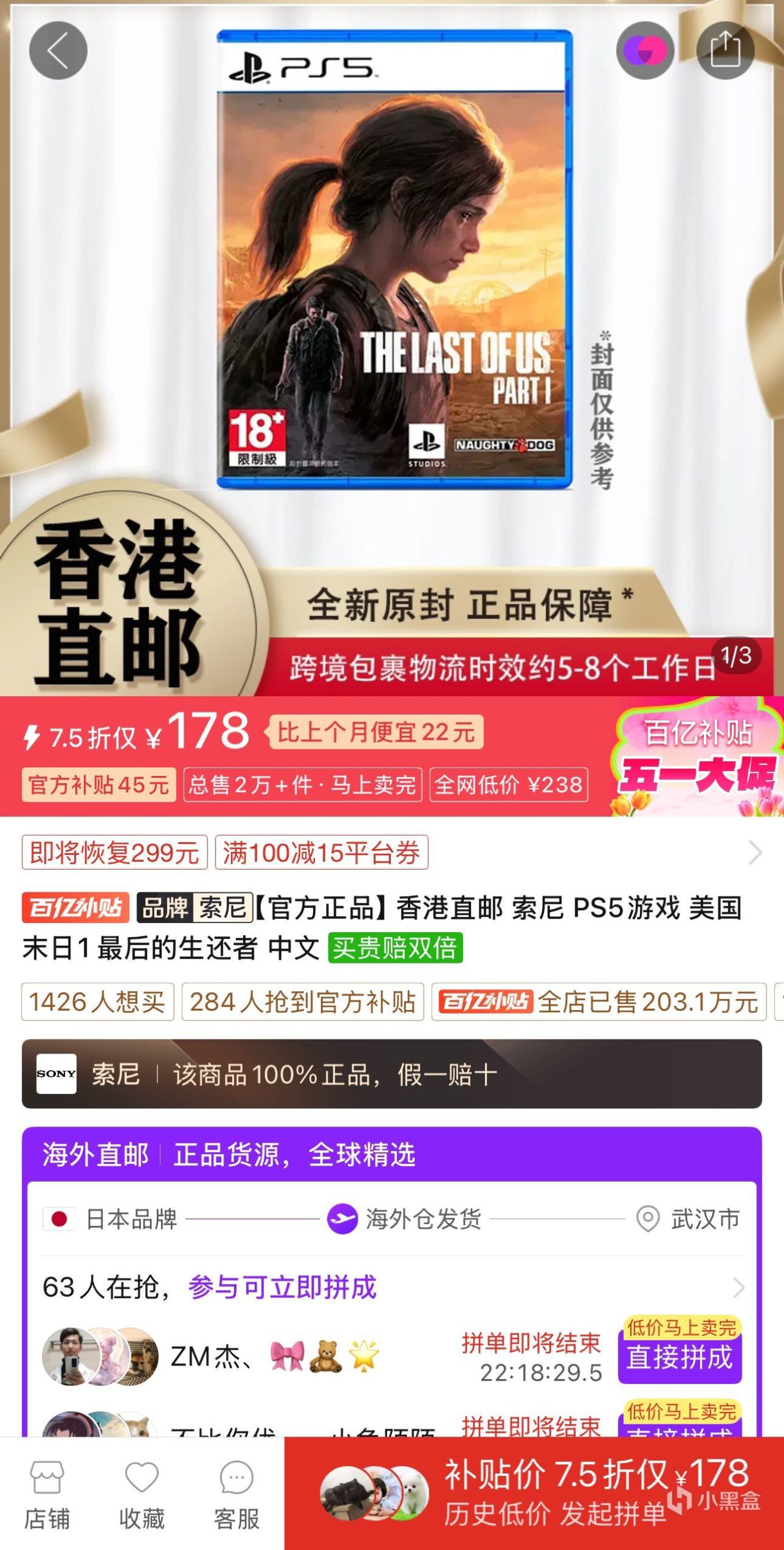 3.PS5遊戲《最後生還者1重製版》港版中文178元全新包郵,這個價格算近期好價了,如果有玩家朋友刷到這個價,可以直接買下,近期應該不會再跌了。