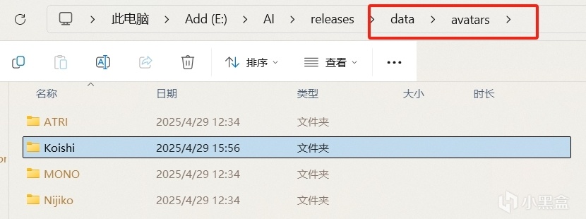直接将你下载的角色文件夹放进avatars文件夹内,此时Kourichat就已经识别到这个角色文件了