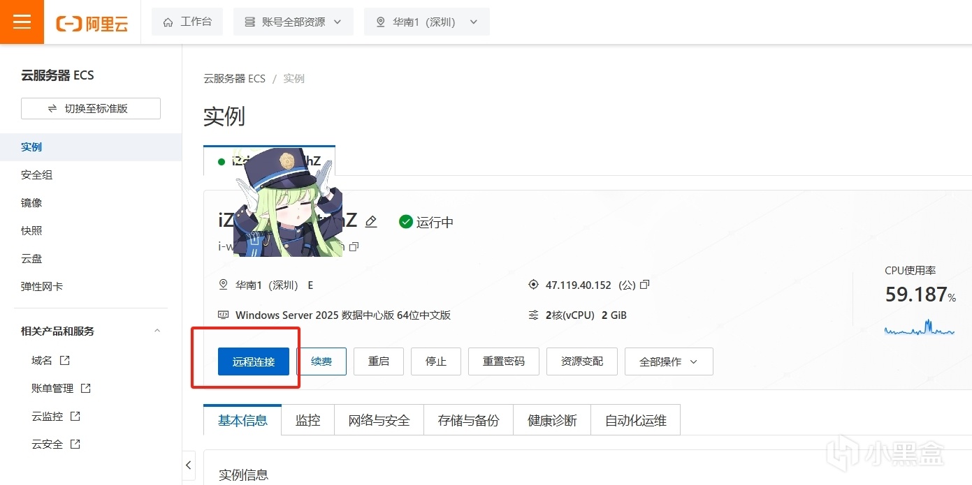 云服务器配置好之后直接在控制台中启动实例,远程连接就可以使用了