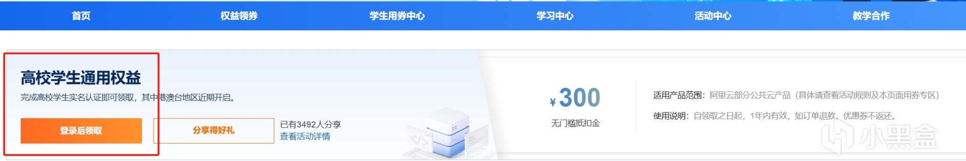 进入后在免费300元券那里登录并实名认证学生身份即可领取