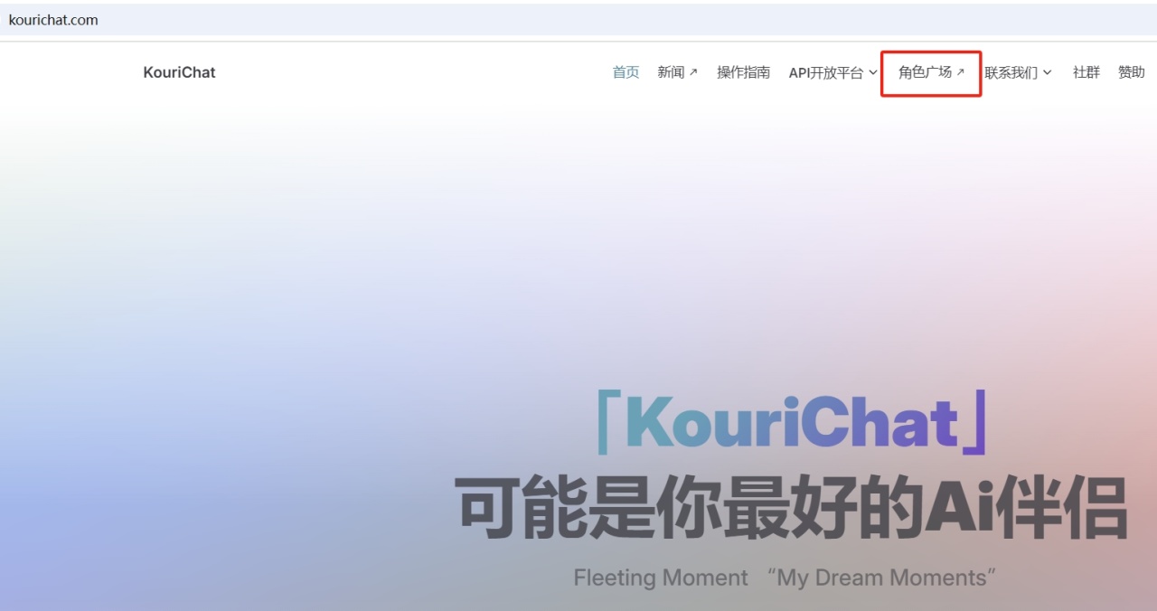 选择你需要的AI角色时,可以在Kourichat官网的角色广场找到网友发布的角色