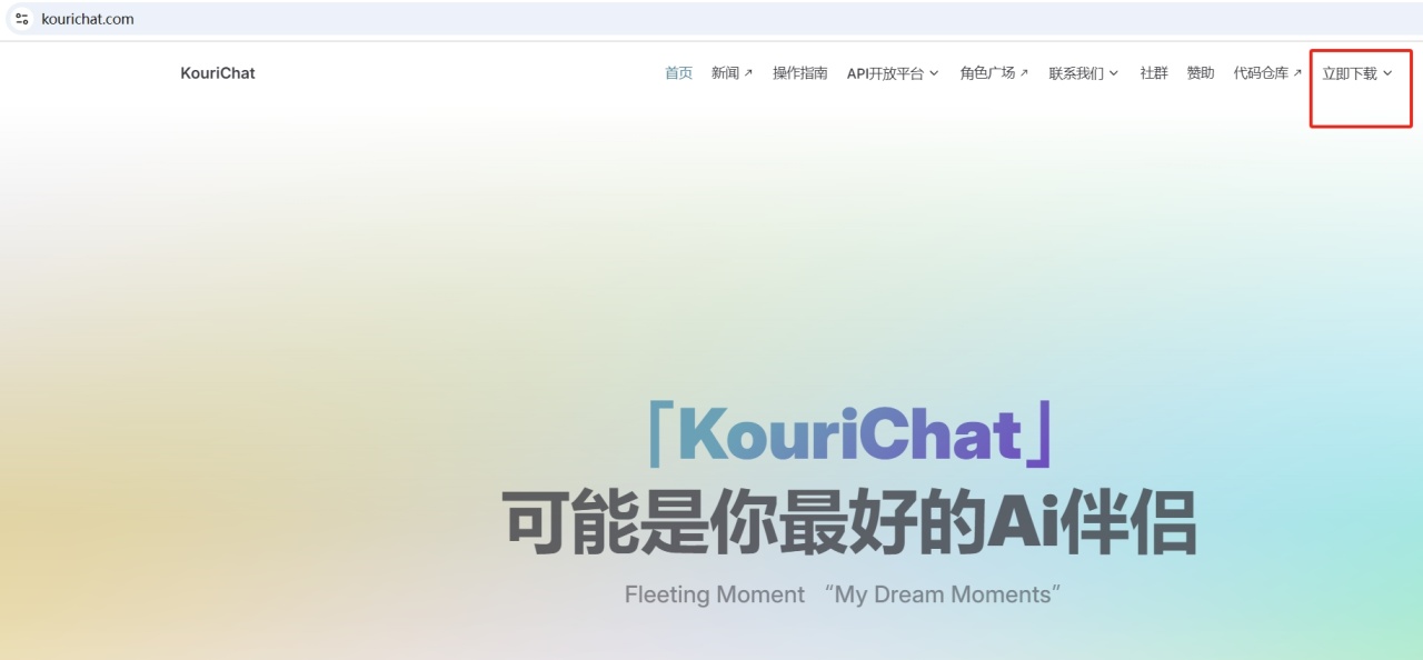 首先按如图进入Kourichat官网,点击立即下载即可(如果需要“断开连接.bat”请用网盘下载)