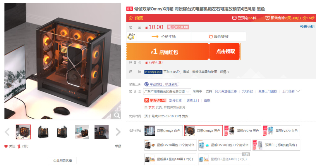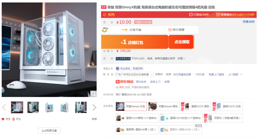 骨伽此前推出的支持三種擺放朝向、主板安裝方向逆時針旋轉 90° 的對稱式設計機箱雙擎 OmnyX 現已上市,參與支付定金預售活動後黑色款到手價 599 元,白色款則是 649 元。