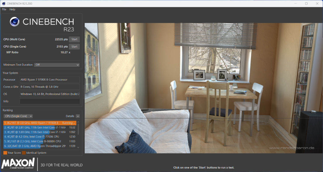 將CPU的PBO設爲Enable後,多核得分22535 pts,單核得分2193 pts;