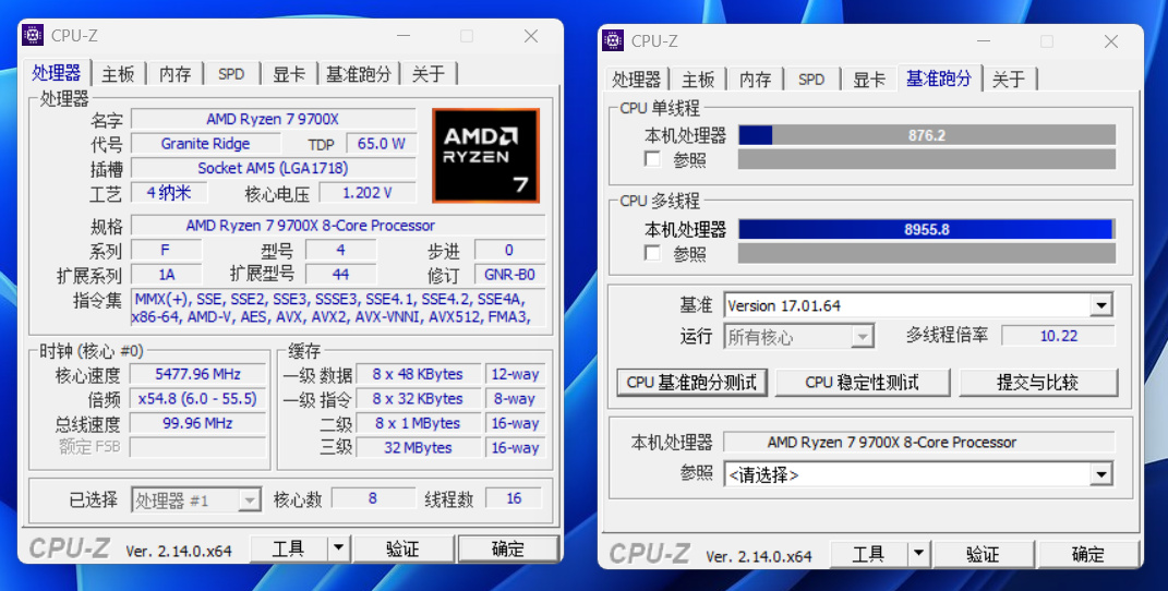 手動開啓PBO後,再次測試,單核得分876.2分,多核得分8955.8分;
