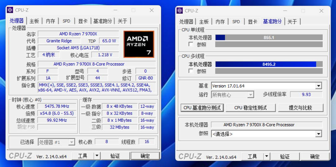 將CPU的PBO設爲Enable後,再次測試,單核得分855.1分,多核得分8495.2分;
